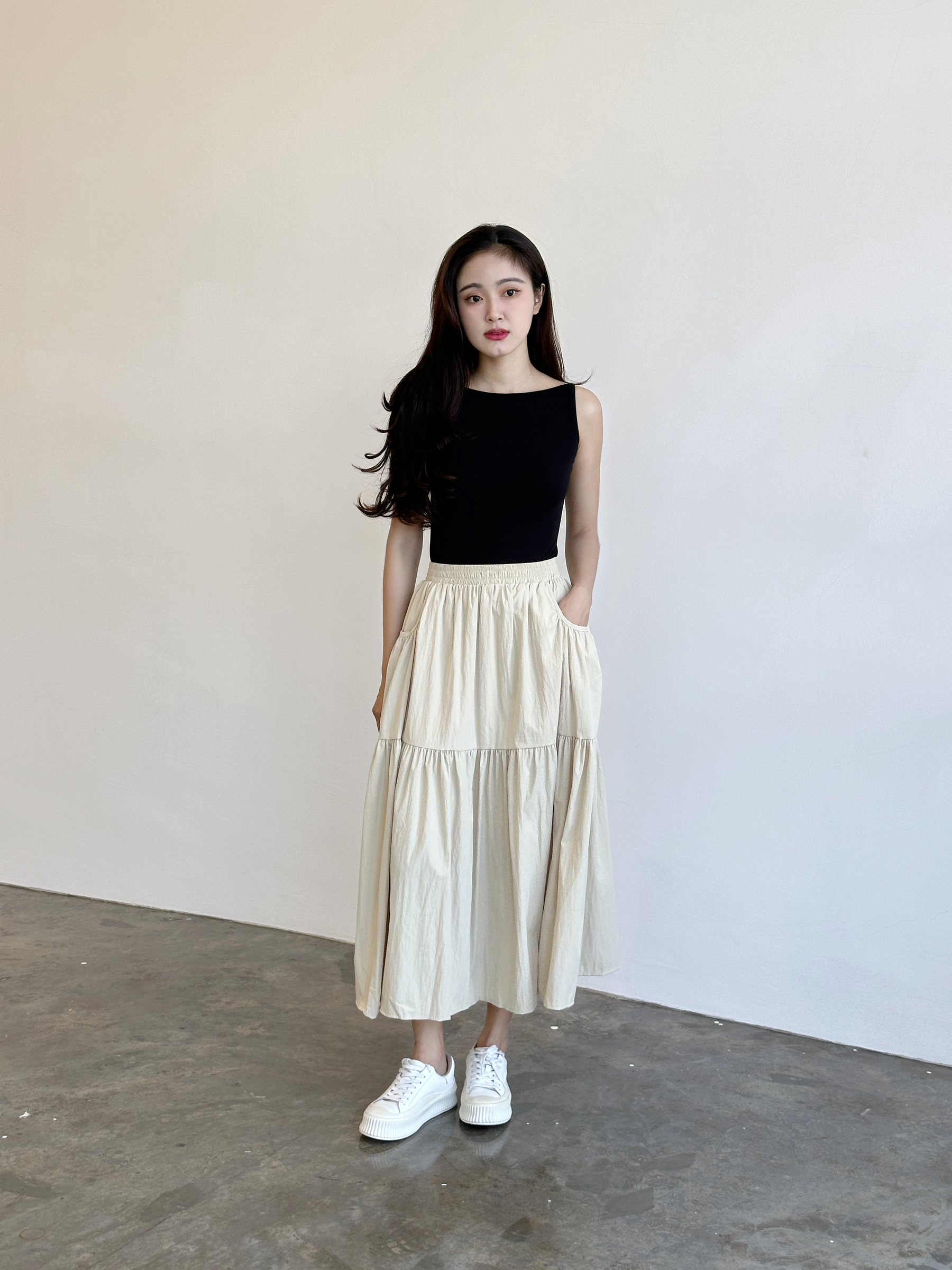 U neck ribbed knit singlet - 3 colors