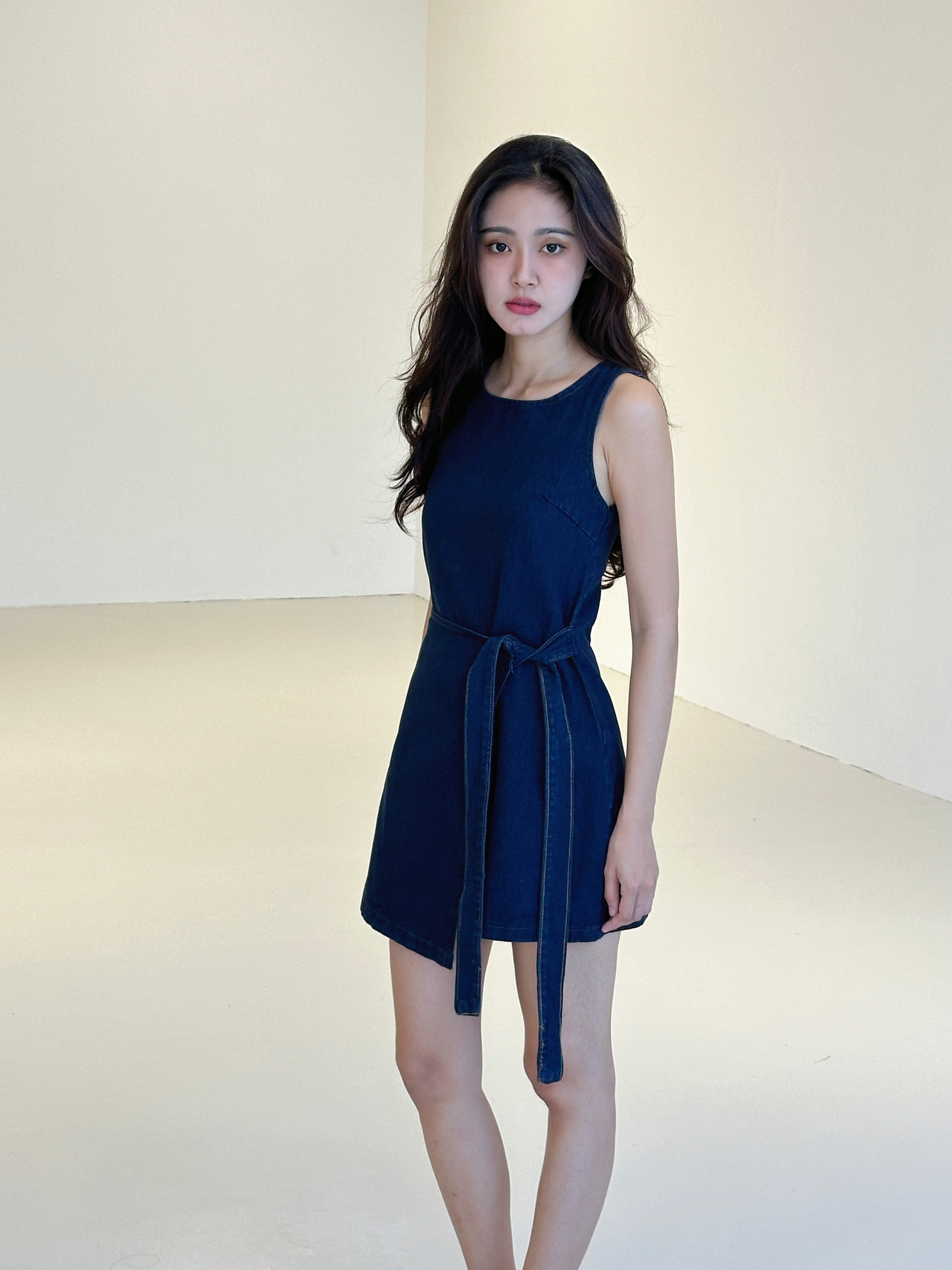 Tied denim mini dress - dark blue