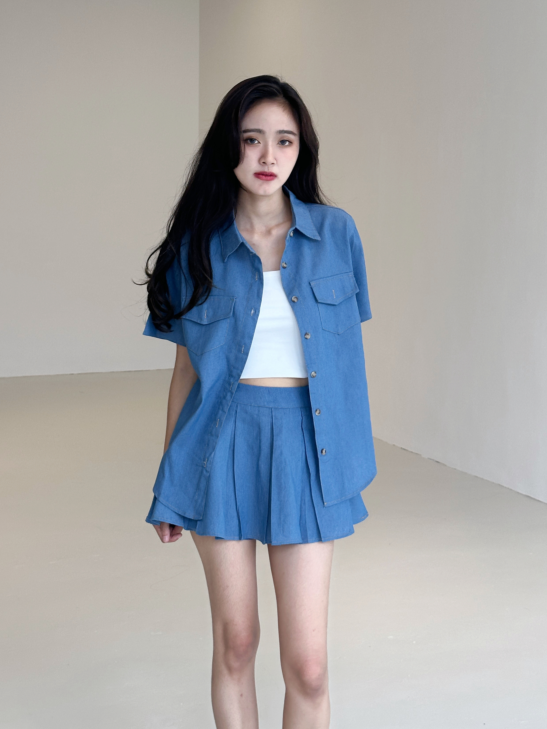 Heena Denim shorts set- mid blue